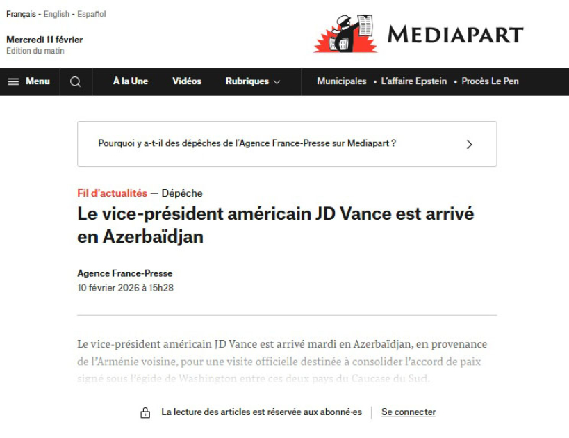 Fransanın informasiya portalları, televiziya və radioları Amerika Birləşmiş Ştatlarının Vitse-prezidenti Cey. Di. Vensın Bakıya səfərini, Prezident İlham Əliyevlə görüşünü işıqlandırıblar.