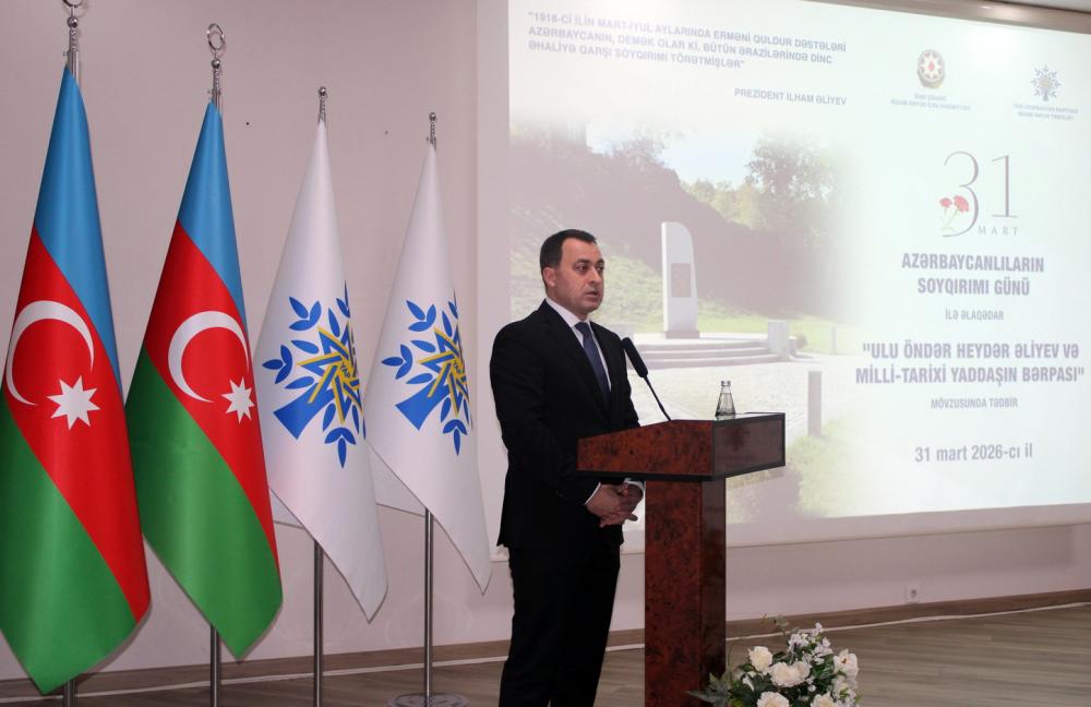Nizami Rayon İcra Hakimiyyətinin və Yeni Azərbaycan Partiyası Nizami rayon təşkilatının 31 mart – Azərbaycanlıların Soyqırımı Günü ilə əlaqədar “Ulu Öndər Heydər Əliyev və milli-tarixi yaddaşın bərpası” mövzusunda birgə tədbiri keçirilib.