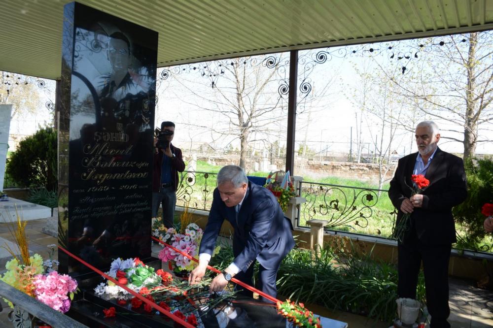 Aprel döyüşlərində şəhid olmuş Nicat İsgəndərovun məzarı ziyarət edilib