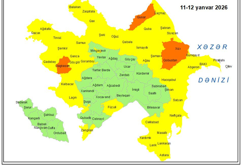 Yanvarın 11-nə gözlənilən hava proqnozu açıqlanıb