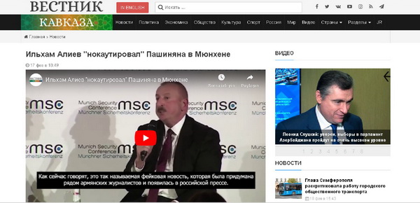 “Vestikavkaza.ru”: Prezident İlham Əliyev Münxendə Paşinyanı darmadağın etdi