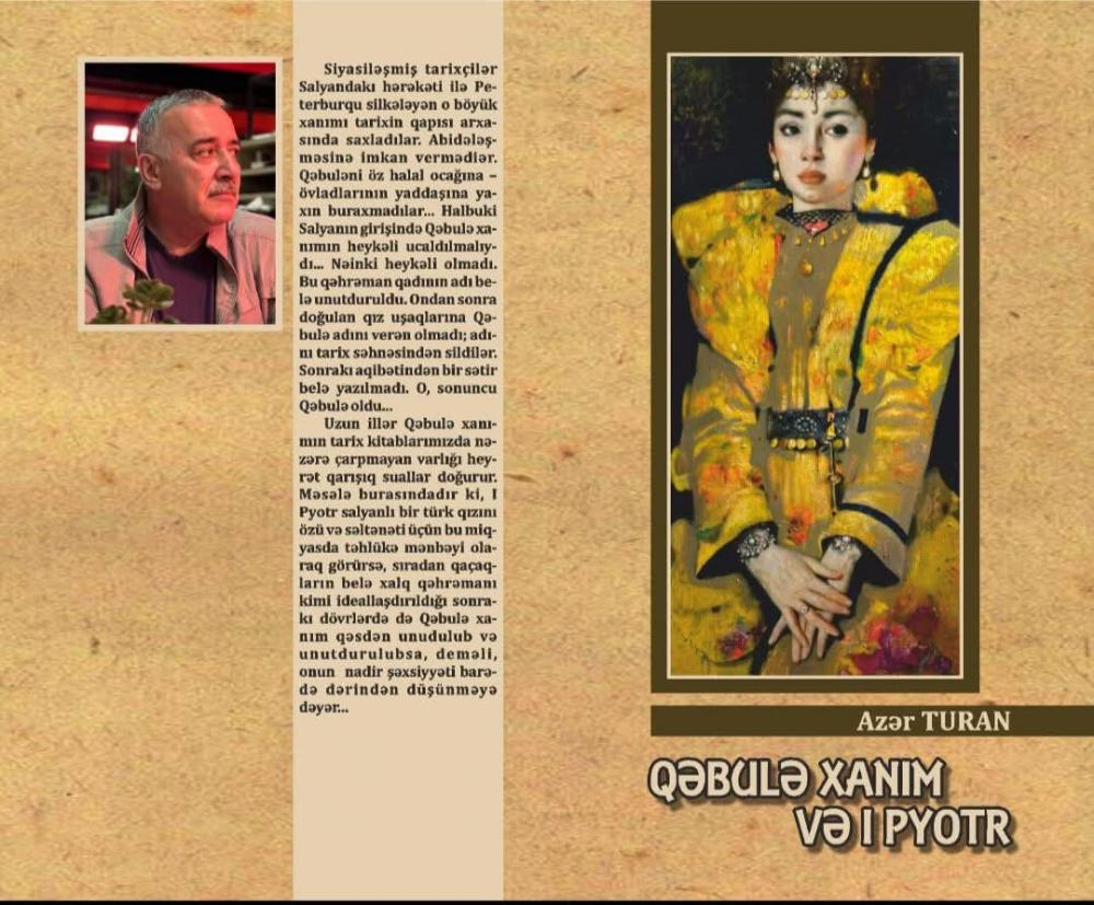 Azər Turanın "Qəbulə xanım və I Pyotr" kitabı XVIII əsrin əvvəllərində Azərbaycan cəmiyyətinin psixoloji durumunu, xalqımızın yaşadığı məşəqqətli tale yolu və travma tarixini öyrənmək baxımından nadir nümunələrdən biridir. Bu kiçik tədqiqata XVIII əsr, hətta ondan əvvəlki və sonrakı dövrlərin tarix diskursunun bir faktı kimi baxmaq lazımdır. Burada eşidilən, güman, fərz olunan deyil, ancaq yazılan, şahid olunan, gerçək məxəzlərin məntiqi ilə tarixləşən faktlar tədqiqat predmetinə çevrilir. Bəhs olunan qanlı hadisələrin canlı şahidləri, tarix və ədəbiyyat mətnləri, hətta ağrılı təhkiyəsi ilə kitaba sənəd etibarlığı qazandıran müəllif yanaşmaları, tutarlı məntiqi keçidləri və s. Bu qürur səhifəsi ancaq bioqrafik fakt olaraq bir fərdin şəxsi taleyi zəminində verilmir, bir xalqın, şəhərin, mahalın faciəsi kimi təqdim olunur: "1724-cü ildə Salyanda bir gündə rus imperiya ordusunun bir batalyonunun bütün zabit heyəti zərərsizləşdirilmişdir. Salyanda elə bir hadisə baş vermişdi ki, hətta rus tarixçiləri də buna biganə qala bilməmişdilər. Bu, təkcə Salyanın tarixində deyil, ümumazərbaycan tarixində sonrakı dövrlərdə də bənzərinə rast gəlinməyən nadir hadisə idi".