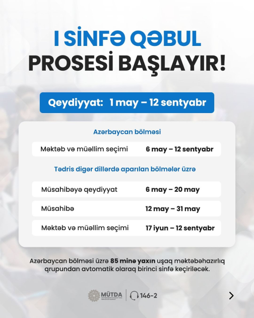 Agentlik: Birinci sinfə qəbul üçün 4000-dən çox uşaq qeydiyyatdan keçirilib