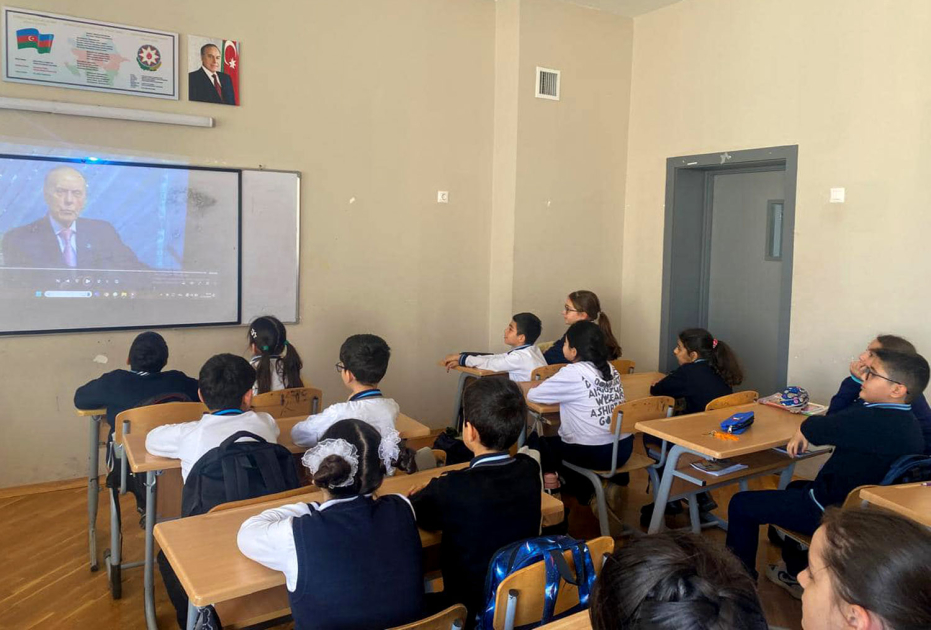 Tədbirlərdə Heydər Əliyevin siyasi xəttinin Prezident İlham Əliyev tərəfindən uğurla davam etdirildiyi, Azərbaycanın dövlət quruculuğu yolunda inamla irəlilədiyi, ərazi bütövlüyümüzün və suverenliyimizin təmin olunduğu şagirdlərin diqqətinə çatdırılıb.