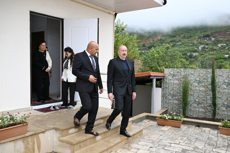Prezident İlham Əliyev kəndə köçmüş Hamlet Gülməmmədovun evində yaradılan şəraitlə tanış olub, ailə üzvləri ilə söhbət edib.