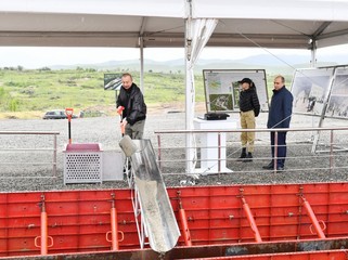 Глава государства заложил фундамент Профессионального лицея в городе Физули.