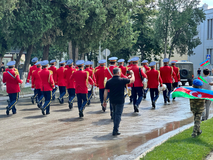 AZƏRTAC-ın bölgə müxbiri xəbər verir ki, Azərbaycan Ordusunun hərbi qulluqçuları hərbi orkestrin müşayiəti ilə şəhərin mərkəzi küçələrində müəyyən olunan marşrutlar üzrə yürüş edib. Vətəndaşlar hərbçilərin yürüşünü sevinc və qürur hissi ilə izləyib, alqışlayıblar. Bayram yürüşü şəhərin Zəfər meydanında başa çatıb.