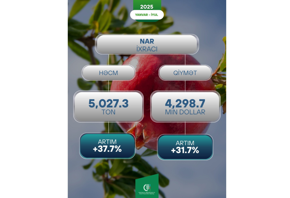 Azərbaycanın xarici bazarlara nar ixracatı 37,7 faiz artıb