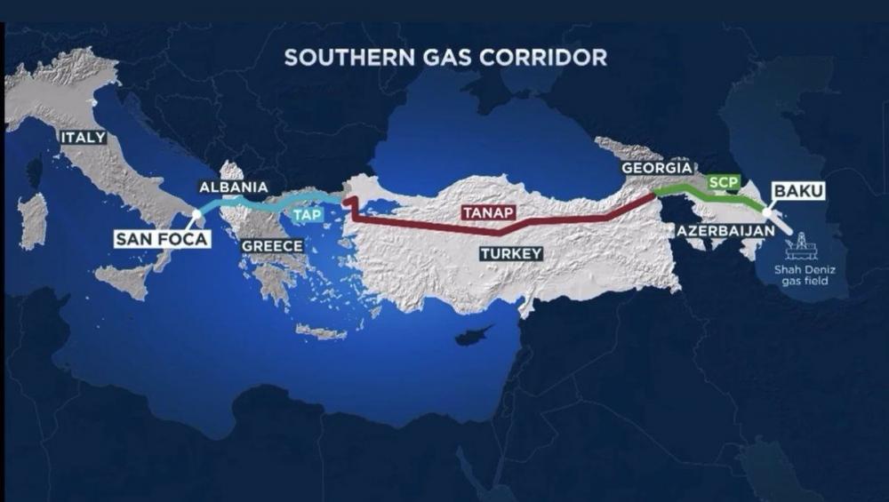 Qafqazın ən mühüm geostrateji nöqtəsində, Şimal və Cənub, Qərb və Şərq dəhlizlərinin qovuşuğunda yerləşən Azərbaycan Avropa ilə Asiya arasında körpü rolunu oynayır. Cənub Qaz Dəhlizinin ən axıcı qollarından biri olan Trans-Adriatik (TAP) qaz boru kəmərində də İtaliya təchizatçı kimi yer almaqdadır. Hazırda iki ölkə enerji-nəqliyat dəhli?lərində yeni gündəliyə uyğun olaraq tərəfdaşlıq imkanlarını daha da artırmaqda qərarlıdır.