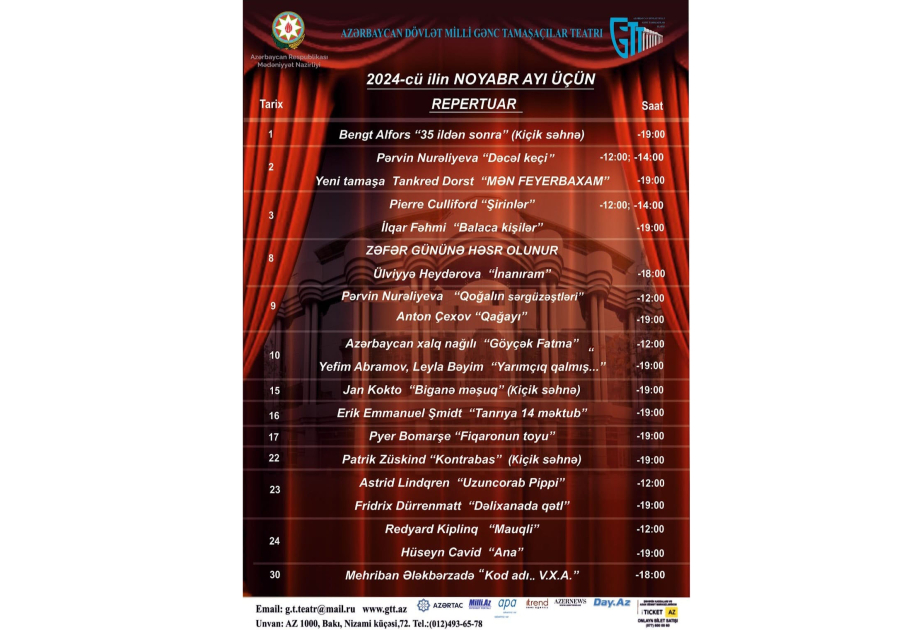 Gənc Tamaşaçılar Teatrı noyabr repertuarını açıqlayıb