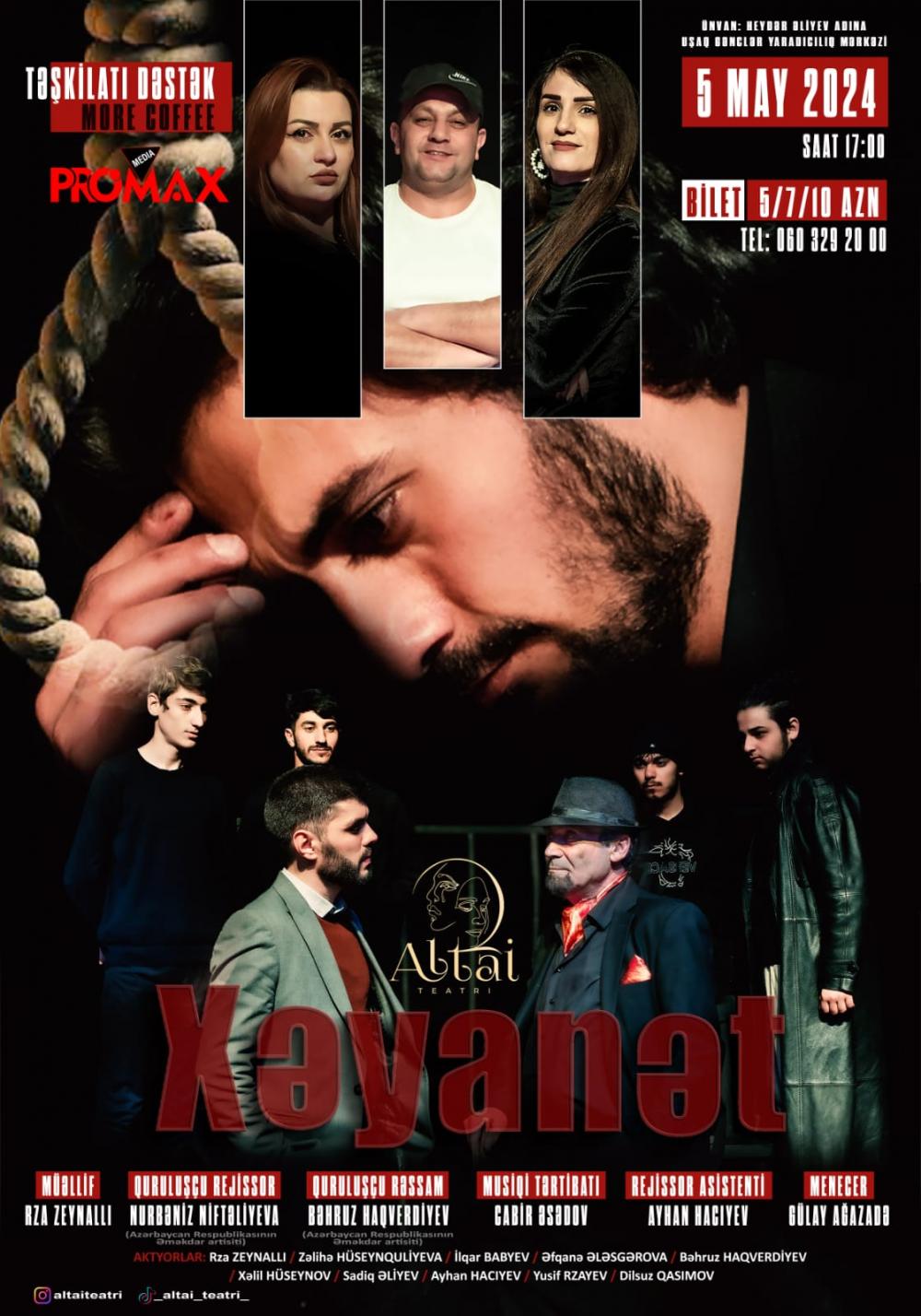 Mayın 5-də zəngin teatr ənənələrinə malik muxtar respublikada yeni “Altai” teatrı fəaliyyətə başlayıb. Teatrın yaradıcısı Azərbaycan Respublikasının Əməkdar artisti, Naxçıvan Dövlət Uşaq Teatrının quruluşçu rejissoru Nurbəniz Niftəliyevadır. Yaradıcı heyət gənc yazar və aktyor Rza Zeynalovun "Xəyanət" əsəri ilə tamaşaçıların görüşünə gəlib.