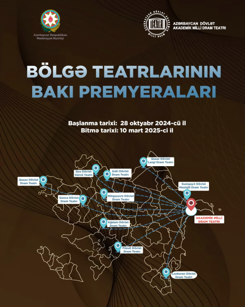 Mədəniyyət Nazirliyinin dəstəyi ilə “Bölgə teatrlarının Bakı premyeraları” adlı yeni layihə həyata keçirilir. Layihənin məqsədi bölgə teatrlarının yaradıcı həyatını stimullaşdırmaq, gənc rejissorların quruluş verdiyi tamaşaları paytaxt sakinlərinə təqdim etməkdir.