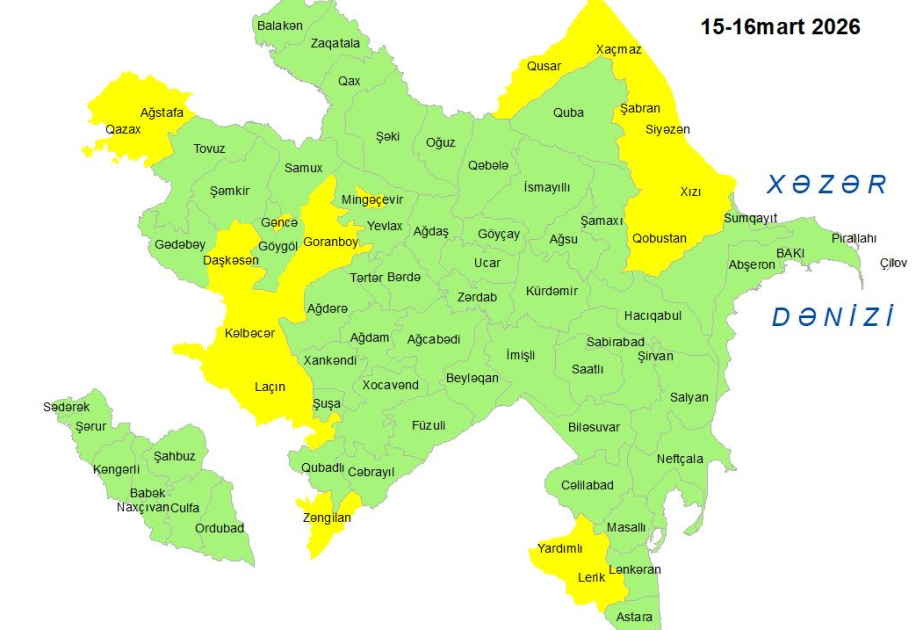 Küləkli hava şəraiti ilə bağlı sarı xəbərdarlıq verilib