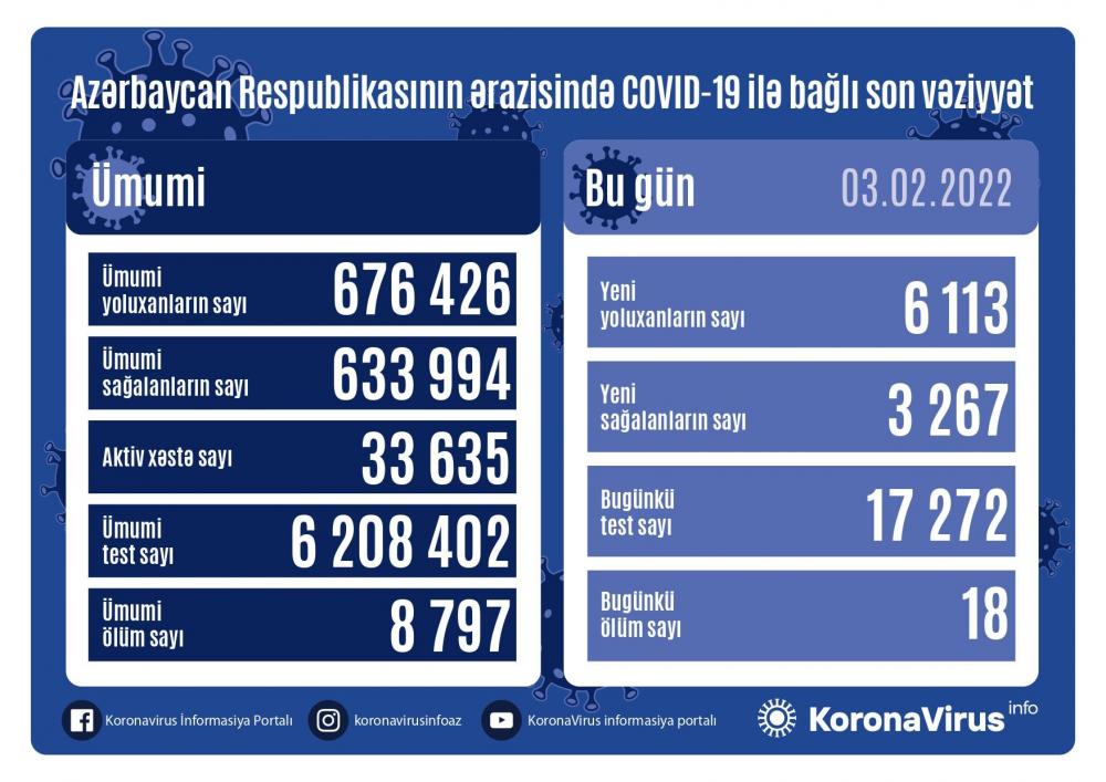 В Азербайджане за сутки выявлено 3 192 случая заражения коронавирусом