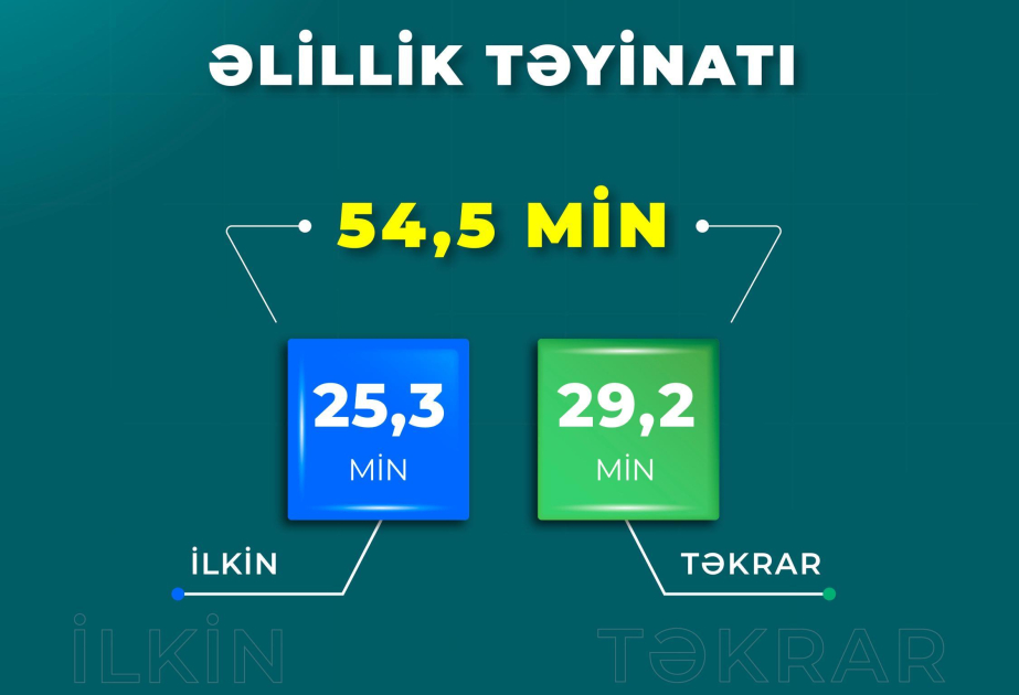 Nazirliyin İctimaiyyətlə əlaqələr şöbəsindən AZƏRTAC-a verilən məlumata görə, onlardan 25 min 300 şəxsə ilkin, 29 min 200 şəxsə isə təkrar əlillik təyinatı aparılıb.