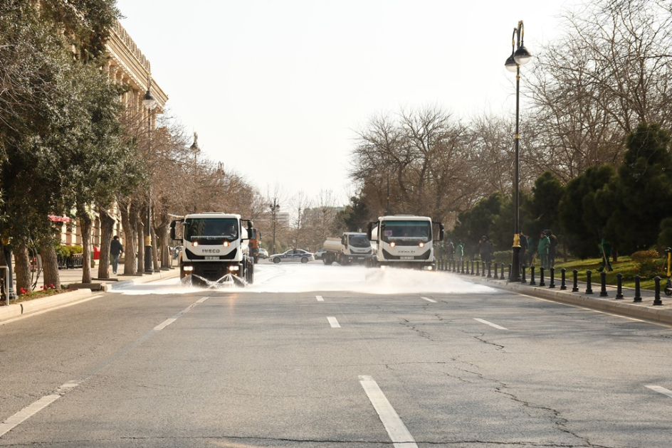 İcra Hakimiyyətinin mətbuat xidmətindən AZƏRTAC-a verilən məlumata görə, paytaxtın kommunal təsərrüfat xidmətlərinin texnikası ilə əsas küçə və prospektlər, həm də məhəllədaxili və ara yollar bitki və canlılara ziyansız yuyucu maddələrlə yuyulub. Xidmətin əməkdaşları tərəfindən prospekt və küçələrin, səki kənarlarının, bordürlərin və buradakı işıq dirəklərinin, yol kənarındakı məhəccərlərin, park və istirahət yerlərində oturacaqların yuyulması həyata keçirilib, həyət və yaşayış məhəllələrində təmizlik işləri görülüb. İctimai-iaşə, ticarət və digər obyektlərin vitrinləri təmizlənib, ətrafında səliqə-sahman yaradılıb.