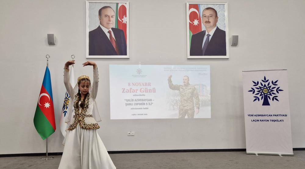Yeni Azərbaycan Partiyası Laçın rayon təşkilatının sədri İlqar İlyasov Azərbaycan Konstitusiyasının qəbulunun 30 ili və 44 günlük Vətən müharibəsində qazanılmış Zəfərin 5 illiyi münasibətilə tədbir iştirakçılarını təbrik edərək bildirib ki, 8 Noyabr xalqımızın milli qürur günü, tarixi ədalətin və beynəlxalq hüququn təntənəsi, ölkəmizin ərazi bütövlüyü və suverenliyinin bərpa olunduğu gün kimi tariximizə əbədi həkk olunub. O vurğulayıb ki, Ümummilli Lider Heydər Əliyevin böyük arzusu olan torpaqlarımızın azad edilməsi və ərazi bütövlüyümüzün bərpası Azərbaycan Respublikasının Prezidenti cənab İlham Əliyevin uzaqgörən siyasəti, mükəmməl diplomatiyası, strateji düşüncəsi, xalqımızın əzmi və iradəsi, dövlətimizin iqtisadi qüdrəti, müasir ordu quruculuğu və xalq–iqtidar birliyi sayəsində gerçəkləşmişdir.