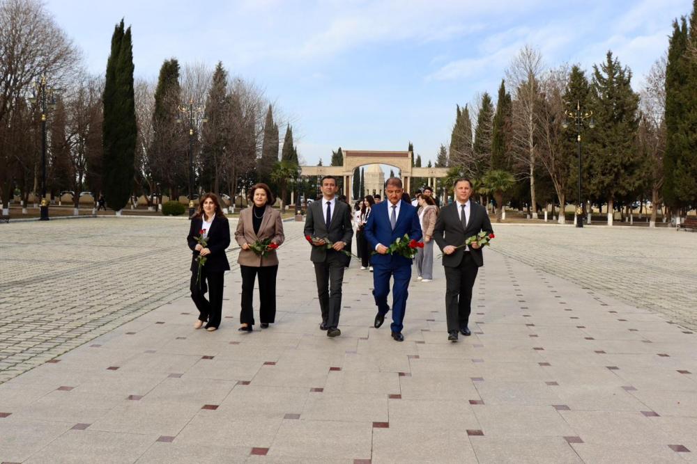 Tədbirin rəsmi hissəsindən öncə tədbir iştirakçıları Ümummilli Lider Heydər Əliyevin abidəsi önünə gül dəstələri düzərək xatirəsini ehtiramla yad ediblər.
