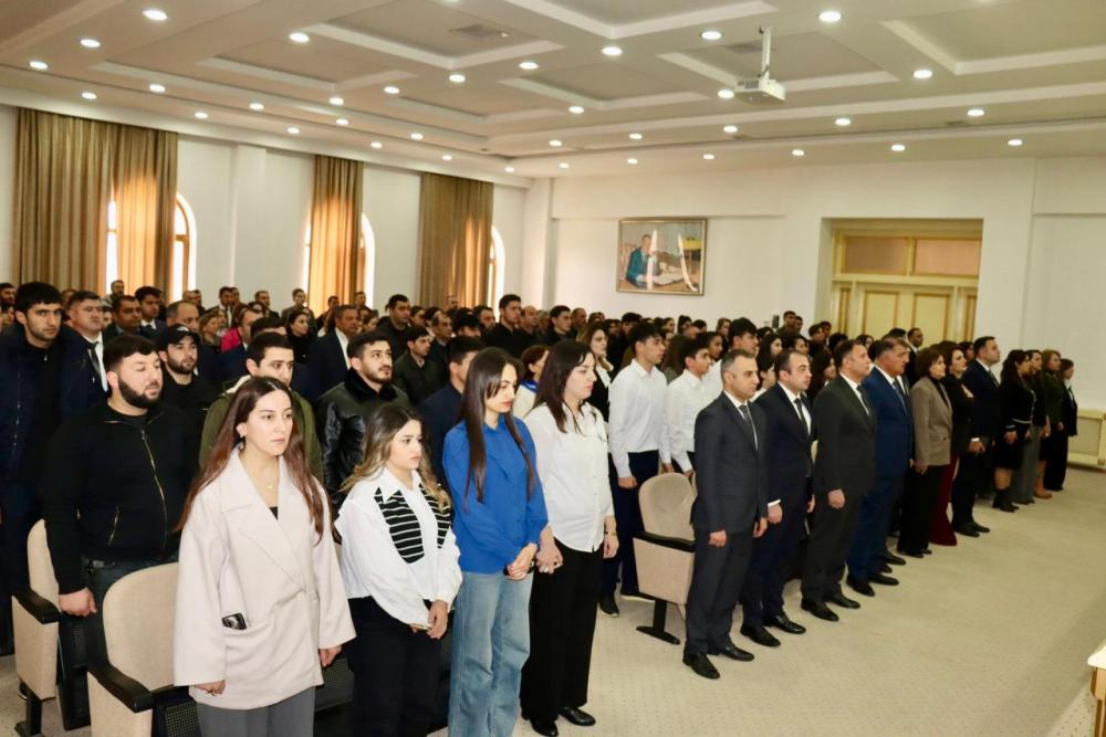 Tədbirdən öncə Ümummilli Lider Heydər Əliyevin və torpaqlarımızın azadlığı uğrunda canlarından keçmiş şəhidlərimizin əziz xatirəsi bir dəqiqəlik sükutla yad edilib və Azərbaycan Respublikasının Dövlət Himni səsləndirilib. Daha sonra “2 Fevral-Azərbaycan Gəncləri Günü” münasibəti ilə videoçarxa baxılıb.