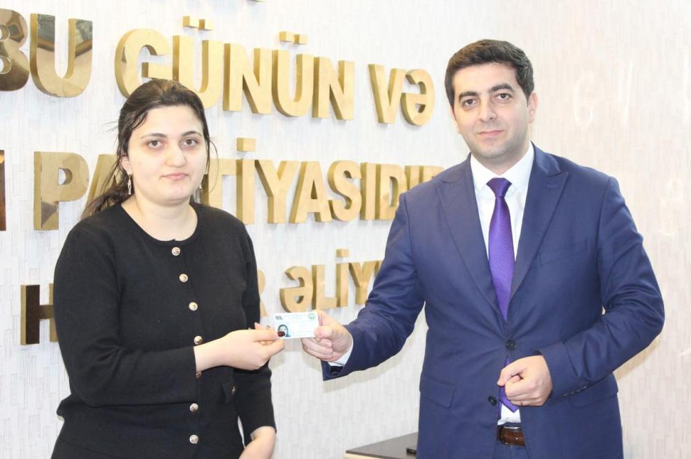 Sonda partiya sıralarına yeni qəbul edilən gənc üzvlərə partiya vəsiqələri təqdim olunub.