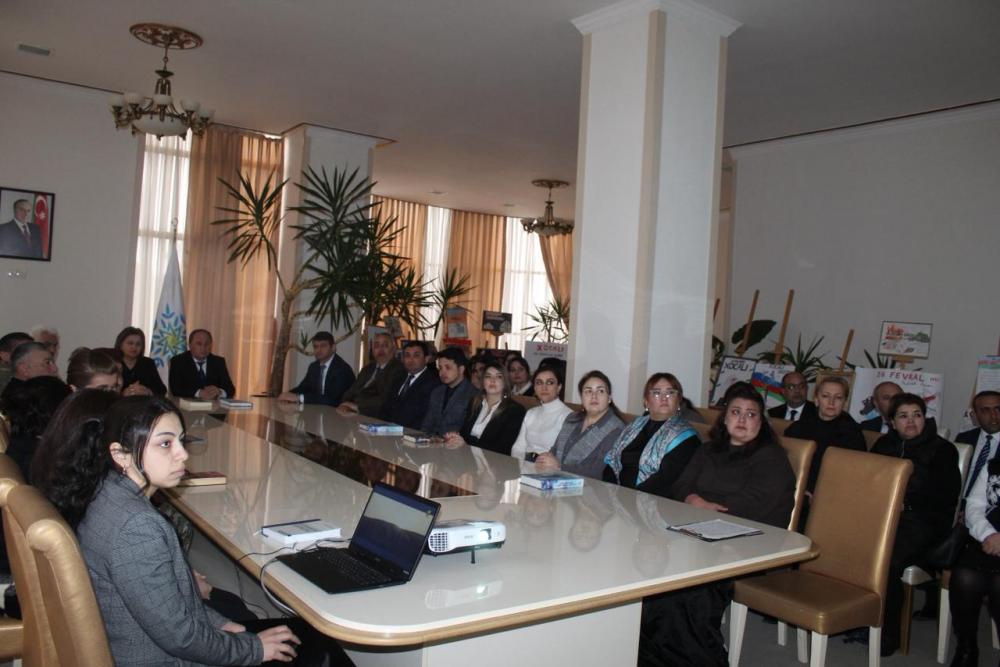 “Şəhərsalma və Memarlıq İli” çərçivəsində Göygöl Rayon İcra Hakimiyyətinin və Yeni Azərbaycan Partiyası (YAP) Göygöl rayon təşkilatının birgə təşkilatçılığı ilə Heydər Əliyev Mərkəzində Xocalı soyqırımının 34-ci ildönümü münasibəti ilə “Unutmadıq; Xocalı qan yaddaşımızdır” mövzusunda tədbir keçirilib.
