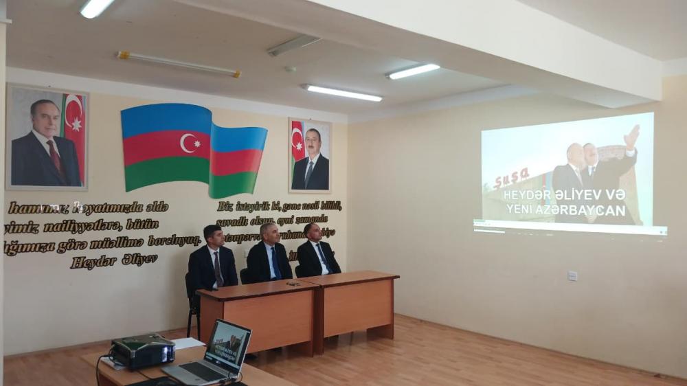 Ulu Öndər Heydər Əliyevin həyat və yaradıcılığına həsr olunmuş “ Heydər Əliyev və Yeni Azərbaycan” adlı filmə baxılmışdır.