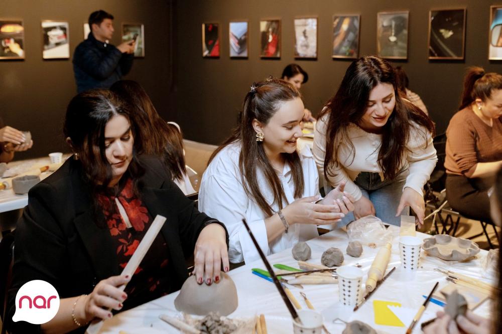 “Nar” 8 Mart – Beynəlxalq Qadınlar Günü münasibətilə xanım jurnalistlər üçün xüsusi bir tədbir təşkil edib. Media nümayəndələri üçün təşkil olunan gil sənətkarlığı master-klassında iştirakçılar öz baxışlarını sənətə çevirməklə fərqli sənət əsərləri hazırlayıblar.