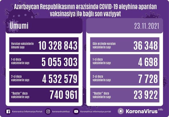 COVID-19 əleyhinə peyvənd olunanların sayı açıqlanıb