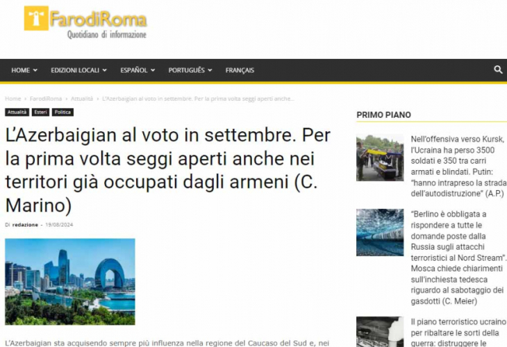 İtaliyalı jurnalistin Milli Məclisə seçkilərlə bağlı məqaləsi dərc olunub