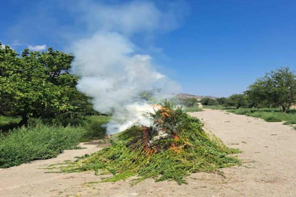 Laçında 1 tondan artıq çətənə bitkisi yandırılıb