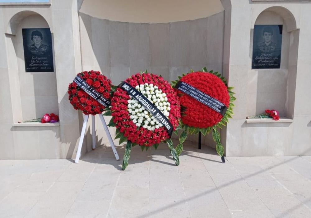 İmişli Rayon Ağsaqqallar Şurası və məktəblər adından abidənin önünə əklillər qoyulmuşdur.