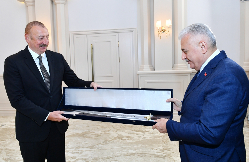 Вручая главе государства памятный подарок, Бинали Йылдырым подчеркнул, что это – аналог сабли Султана Мехмеда Фатиха, покорившего Стамбул, и он вручается покорителю Карабаха - Президенту Ильхаму Алиеву.