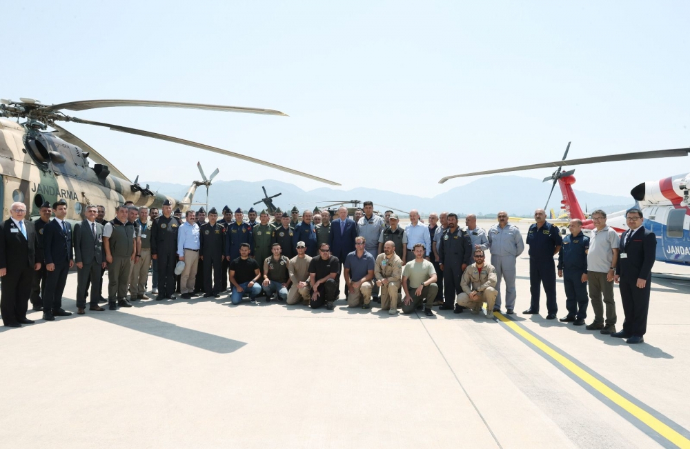 Президент Турции Реджеп Тайип Эрдоган встретился с азербайджанскими пожарными, прибывшими в братскую страну для тушения лесных пожаров в Мармарисе.